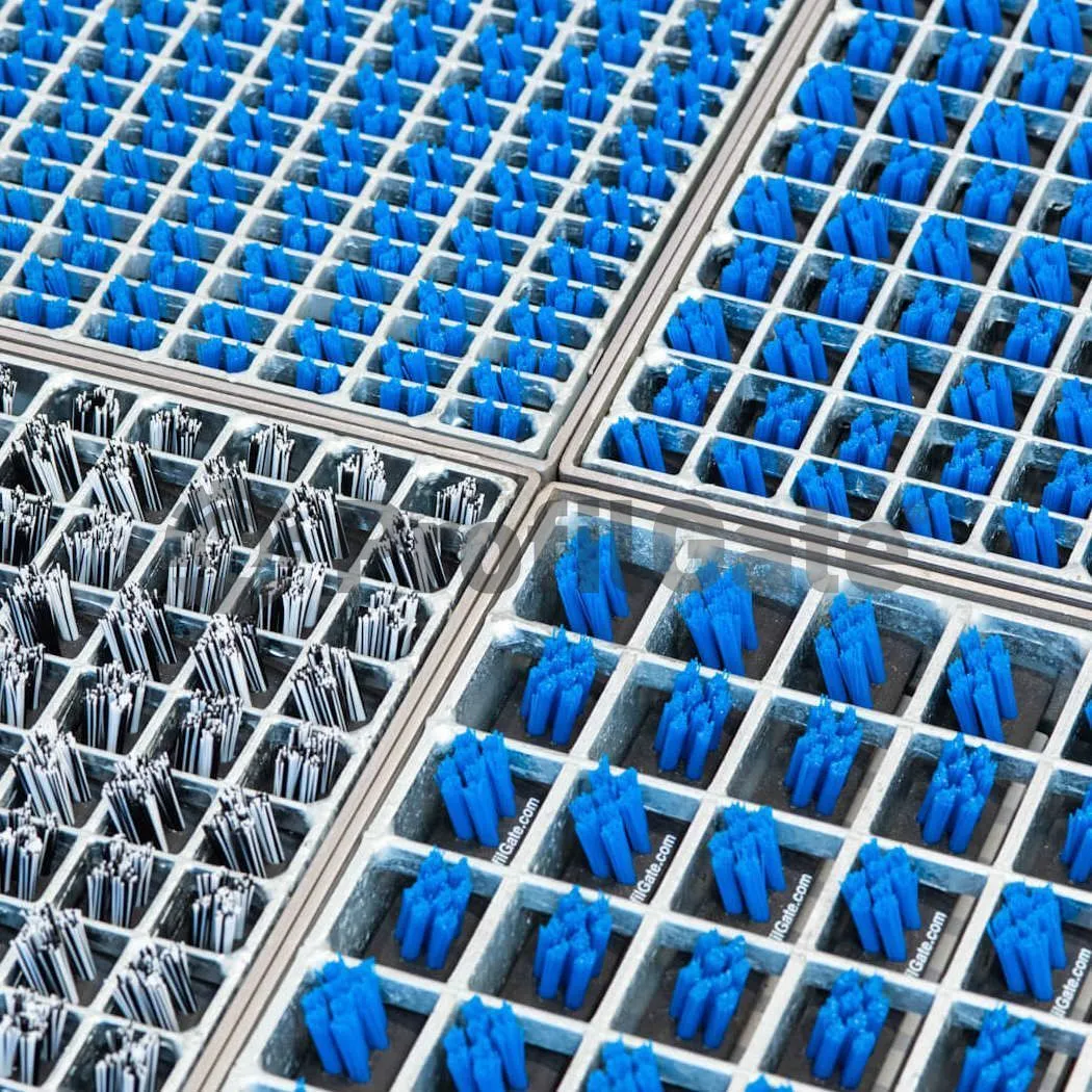 ProfilGate® wykorzystuje mechaniczny system szczotek o specjalnym ułożeniu i napięciu, które wchodzą w bezpośredni kontakt z kołami i podeszwami. Gdy pojazd lub osoba przejeżdża przez strefę czyszczenia, brud jest skutecznie usuwany dzięki ruchowi szczotek i grawitacyjnemu opadaniu zanieczyszczeń do osadnika pod kratownicą. Cały proces odbywa się bez konieczności zasilania elektrycznego — co oznacza niskie koszty eksploatacji i łatwą integrację z istniejącą infrastrukturą.