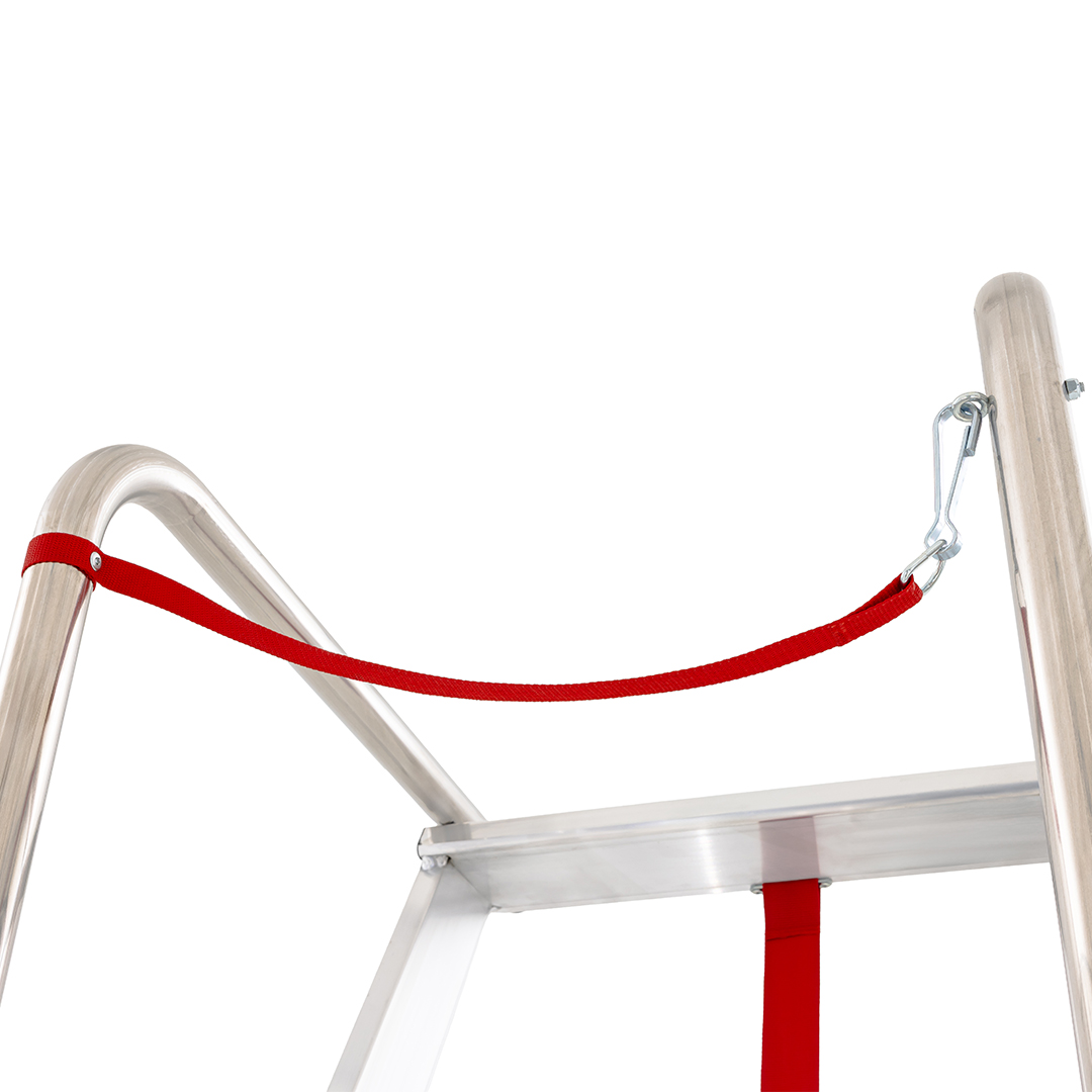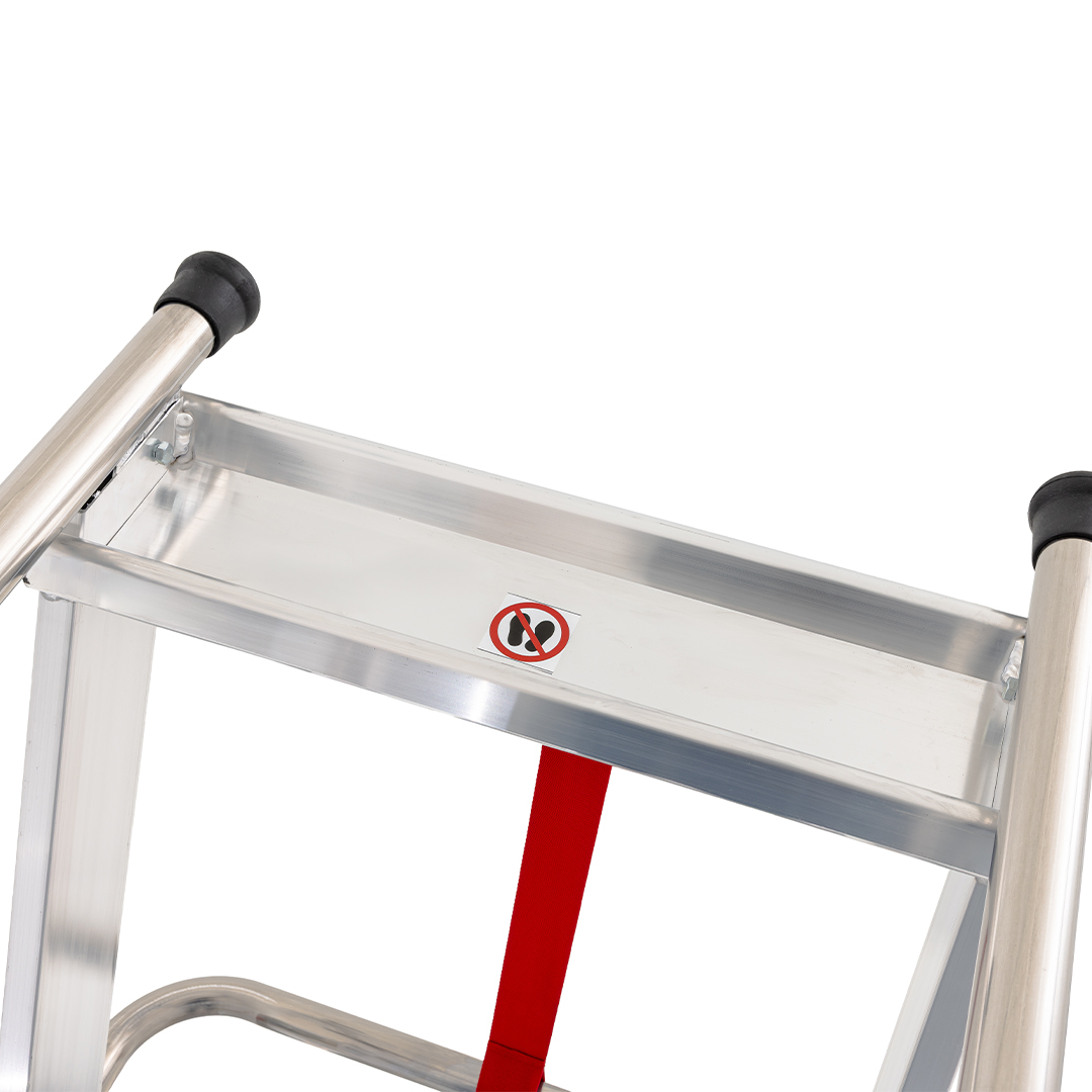 Prosty mechanizm składania sprawia, że podest jest łatwy w transporcie i zajmuje niewiele miejsca podczas przechowywania.