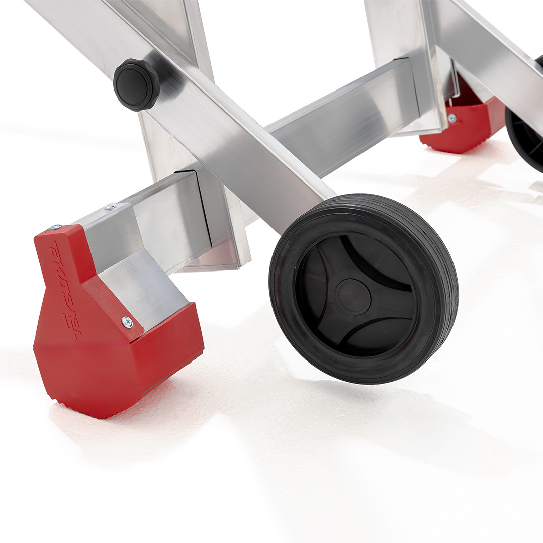 Łatwe i wygodne przemieszczanie podestu dzięki dużym kołom jezdnym o średnicy 170 mm.