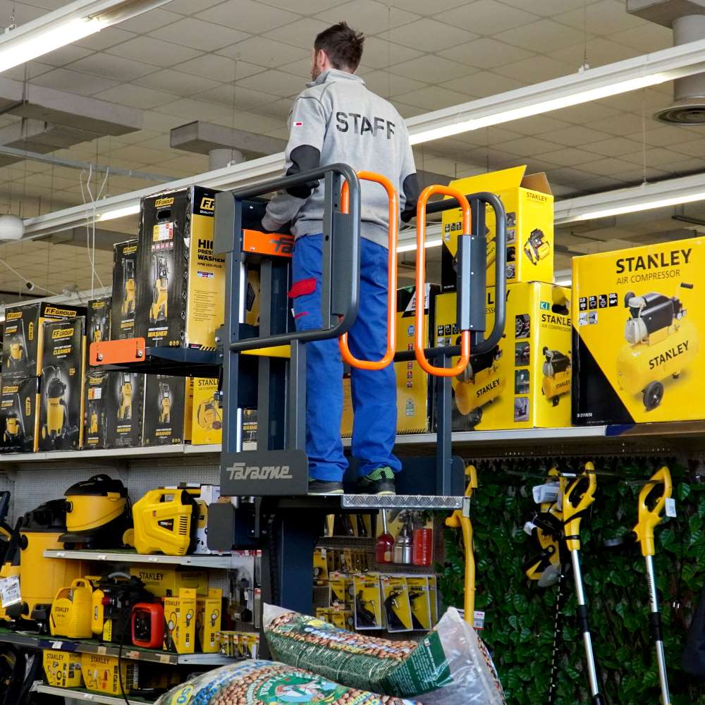 wysokość robocza do 6 m – łatwy dostęp do wyższych poziomów regałów