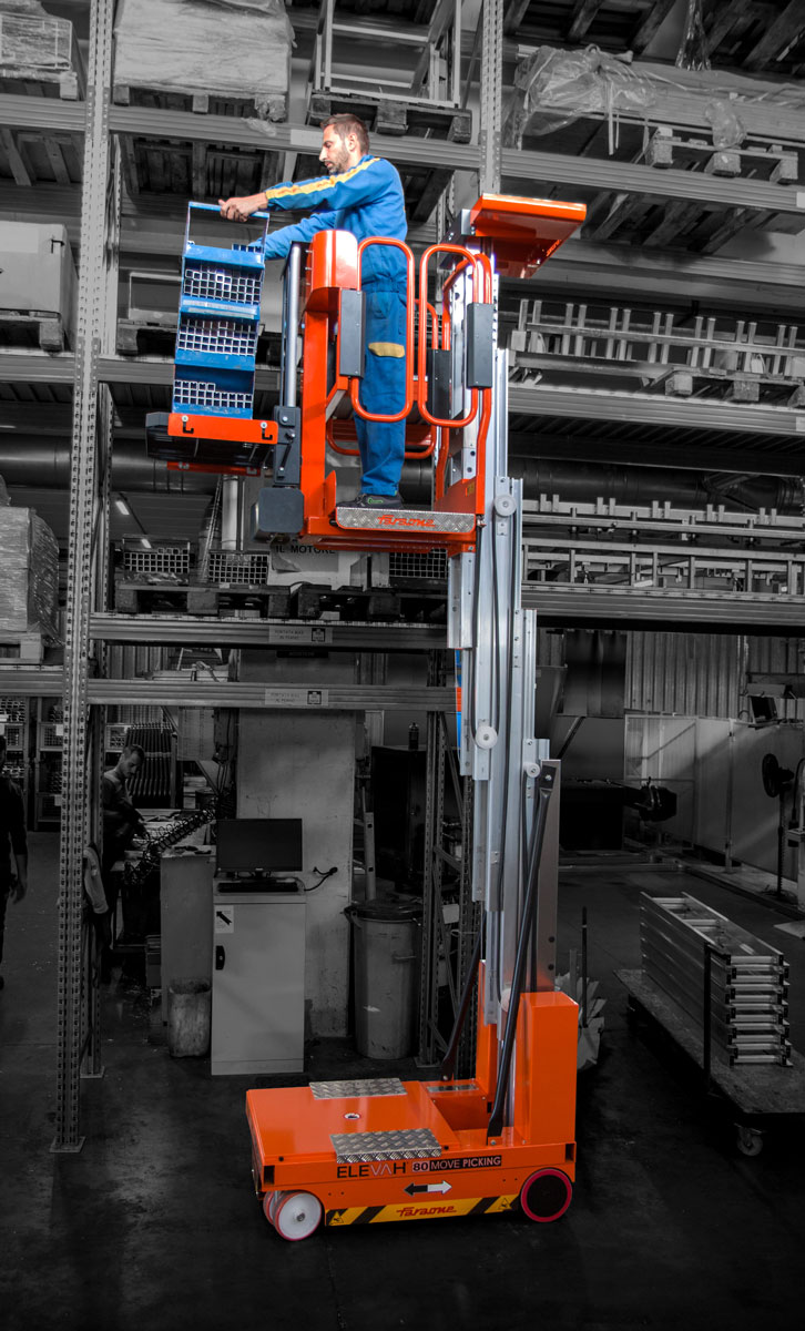 Elevah 8 Move Picking to samojezdny wózek kompletacyjny zaprojektowany z myślą o szybkiej, ergonomicznej i bezpiecznej pracy przy pobieraniu towarów z półek nawet na 7,78 m wysokości. Urządzenie sprawdza się w magazynach, halach logistycznych, sklepach wielkopowierzchniowych i centrach dystrybucyjnych.
