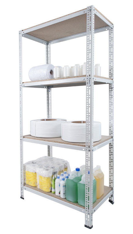 Słupy nośne regału wykonane są z kątownika perforowanego 55×35 x 2 mm i wyposażone są w stopkę z tworzywa. Stelaż pod półki z płyty wiórowej, wykonany jest z kątowników z blach 1,5 mm. Półkę stanowi surowa płyta wiórowa o grubości 16 mm. Szerokość zagięcia półki razem z płytą wiórową to 51 mm. Metalowe elementy regału są lakierowane są proszkowo na kolor szary (RAL 7035). Udźwig całego regału 850 kg.