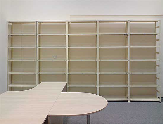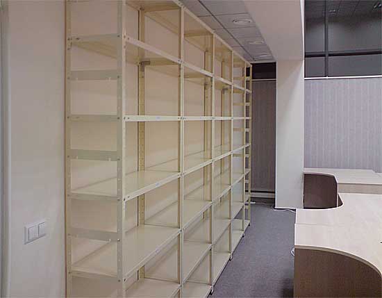 Regały metalowe skręcane posiadają półki wykonane standardowo z blachy stalowej o grubości 0,8 mm, (opcjonalnie 1,0 mm lub 1,2 mm w zależności od wymaganego udźwigu i wielkości). Krawędzie półek są podwójnie doginane, co je usztywnia i pozwala osiągnąć udźwig 100 kg lub w opcjach: 150 lub 200 kg. Słupy nośne wykonane z kątownika 30×30×1,5mm ,2mm lub 40x40x2 mm perforowanego co 50mm i wyposażonego w stopkę z tworzywa. Regały wyposażone są dodatkowo w kątowniki wzmacniające, montowane pod najniższą i najwyższą półkę usztywniające całą konstrukcję regału. W cenniku podajemy ceny za kompletne regały o wysokości 1980 mm. Regały można też kompletować ze słupów nośnych o wys. 2480 lub 2980 mm.