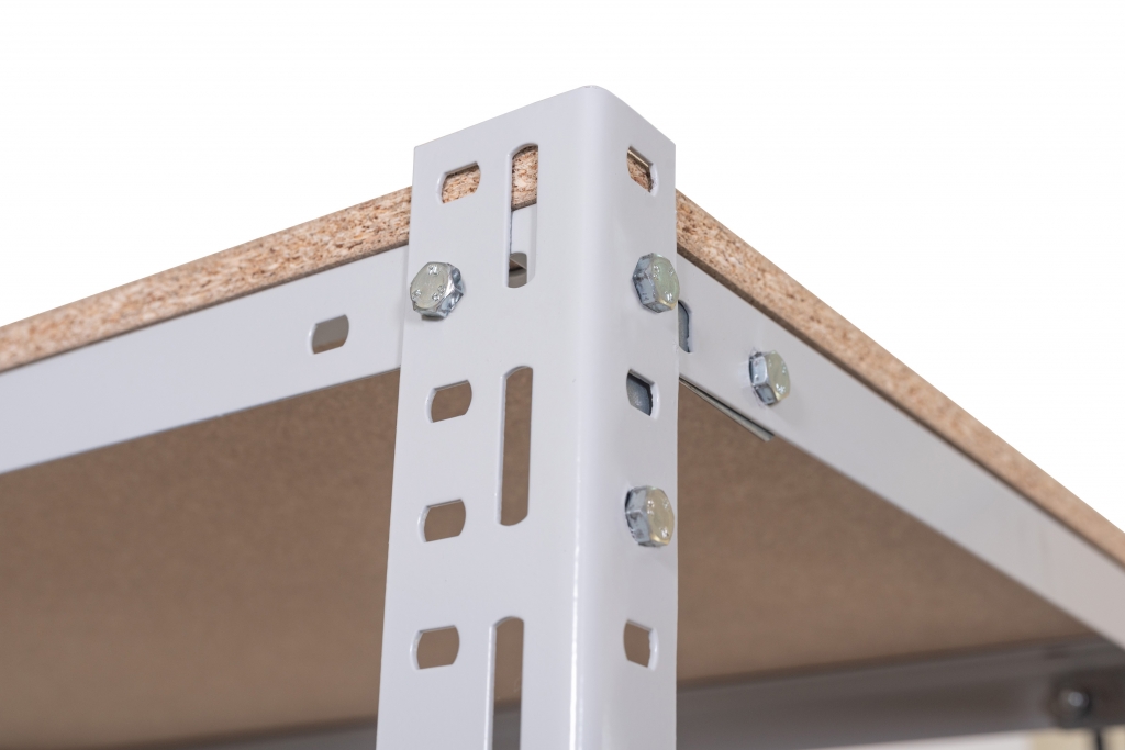Regały skręcane SRWP wyposażone są w półki wykonane są z płyty wiórowej o grubości 16 mm, spoczywającej na kątownikach stalowych o jednostkowym udźwigu na 120 kg. Słupy nośne wykonane z kątownika 60×40×1,8 mm perforowanego co 20 mm i wyposażone w stopkę z tworzywa. Regały półkowe wyposażone są dodatkowo w kątowniki wzmacniające, montowane pod najniższą i najwyższą półkę usztywniające całą konstrukcję regału. Metalowe elementy regału są lakierowane proszkowo na kolor szary.