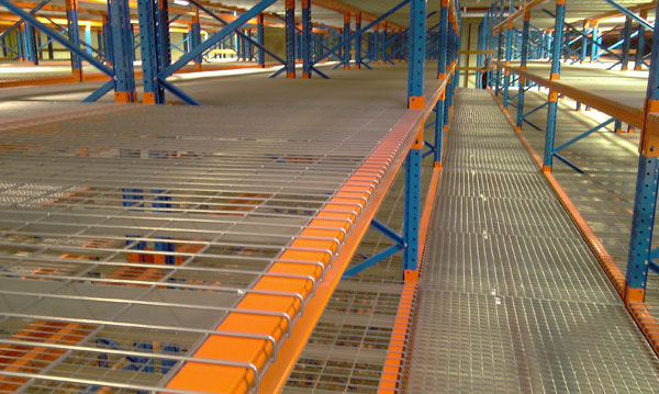 Wypełnienie poziomów składowania w regałach paletowych półkami siatkowymi ocynkowanymi, umożliwia składowanie towarów w mniejszych opakowaniach. Nie przeszkadza to także w składowaniu palet. Siatki w zależności od wymaganego udźwigu posiadają 3 lub 4 wzmocnienia typu „OMEGA”. Wielkość i udźwig siatek dobiera się wg potrzeb. Podana ładowność obowiązuje w przypadku towaru równomiernie rozłożonego na palecie opierającej się na obu trawersach. Półki spełniają wymagania systemów przeciwpożarowych.