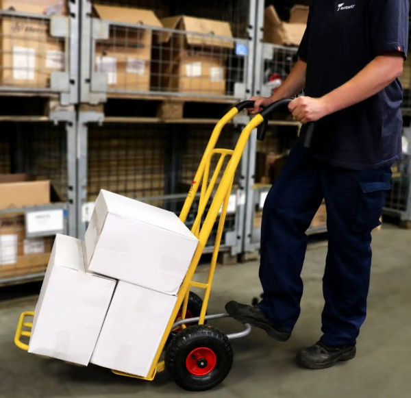 Uniwersalny wózek dwukołowy, zaprojektowany przez duńską firmę Ravendo, do wszystkich zadań transportowych. neumatyczne koła idealnie nadają się do jazdy zarówno po utwardzonych powierzchniach, jak i po nierównym terenie. Duża średnica kół ułatwia pokonywanie krawężników i schodów. Wózek jest solidny i łatwy w manewrowaniu, idealny do transportu lekkich i średnich ładunków w różnych warunkach.