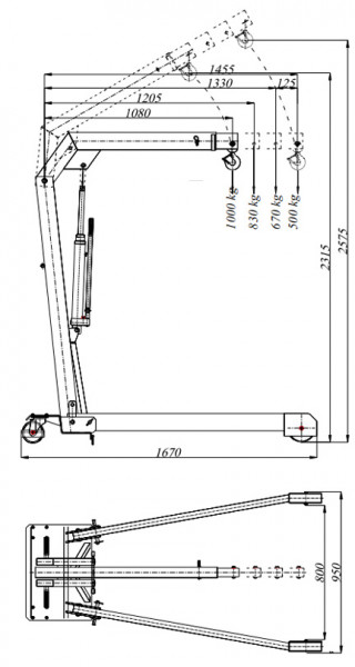 Żuraw hydrauliczny, którego składana konstrukcja pozwala na zaoszczędzenie miejsca. Podnoszenie ramienia odbywa się za pomocą jednostopniowej pompy ręcznej. Płynność opuszczania zapewnia precyzyjny zawór. Ramię posiada cztery stopnie regulacji długości. Przy maksymalnym wysunięciu ramienia udźwig spada do 500 kg. Kółka skrętne wyposażone są w hamulce. Podpory żurawika mogą być w kształcie litery V lub równoległe U.