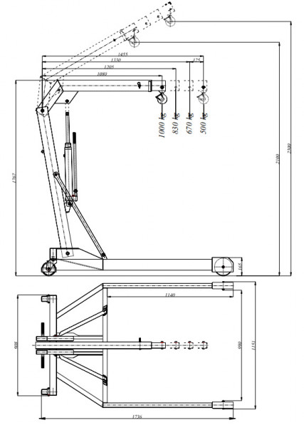 | Udźwig maksymalny całego żurawia: | 1000 kg |
